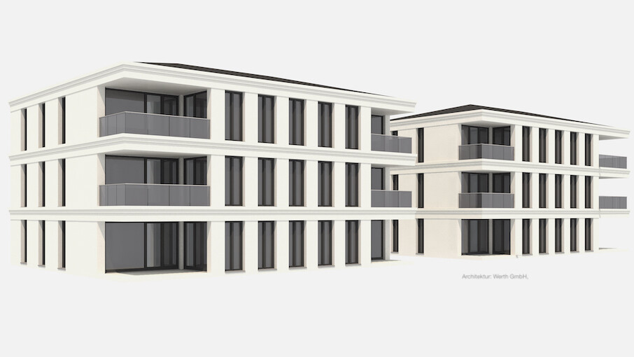 Zwei Mehrfamilienhäuser bieten Platz für jeweils sechs Eigentumswohnungen, von denen ingesamt vier Einheiten im Wege der Wohnraumförderung zur Vermietung erstellt werden. Wohnfflächen und Grundrisse können wir flexibel Ihren Wünschen und Bedürfnissen anpassen. Alle Wohnungen sind mit dem Aufzug schwellenfrei erreichbar und haben eine großzügige Süd-Loggia. Pkw-Stellplätze planen wir als Carports.